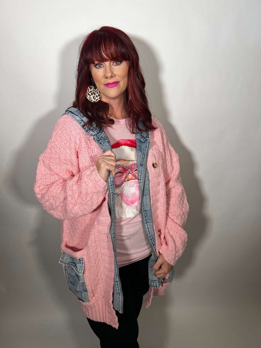 WASHED CHECKER DENIM ZIP UP SWEATER CARDIGAN