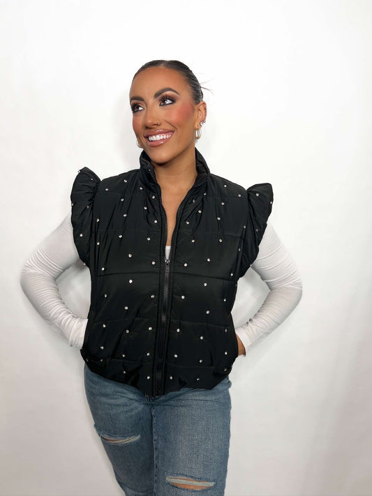 Rhinestone Embellished Quilted Puffer Vest