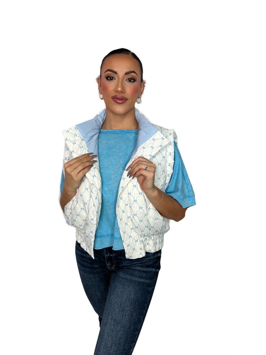 Bow Printed Reversible Padded Vest