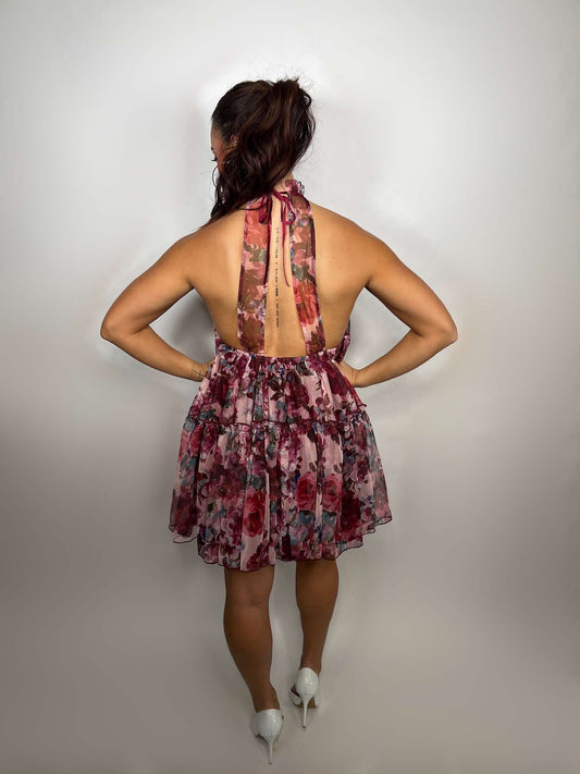 Valentine's Day Red Sangria Halter Neck Mini Dress