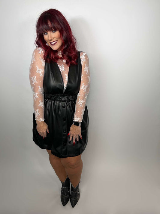 FAUX LEATHER FRONT ZIPPER MINI DRESS