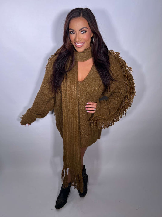 LOOSE FIT CHECKERED KNITTED SWEATER DRESS