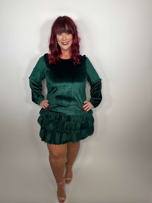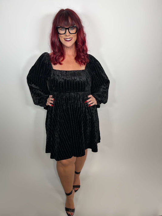 Long Sleeve Velvet Dots Organza Trim Mini Dress