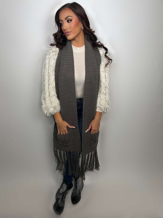Oversized Two Pocket Tassel Scarf