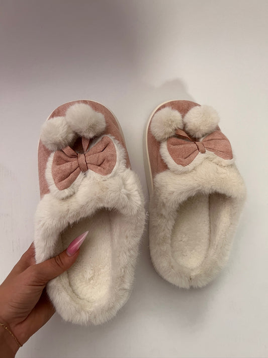 Bow Pom Pom Faux Suede Cozy Warm Slippers