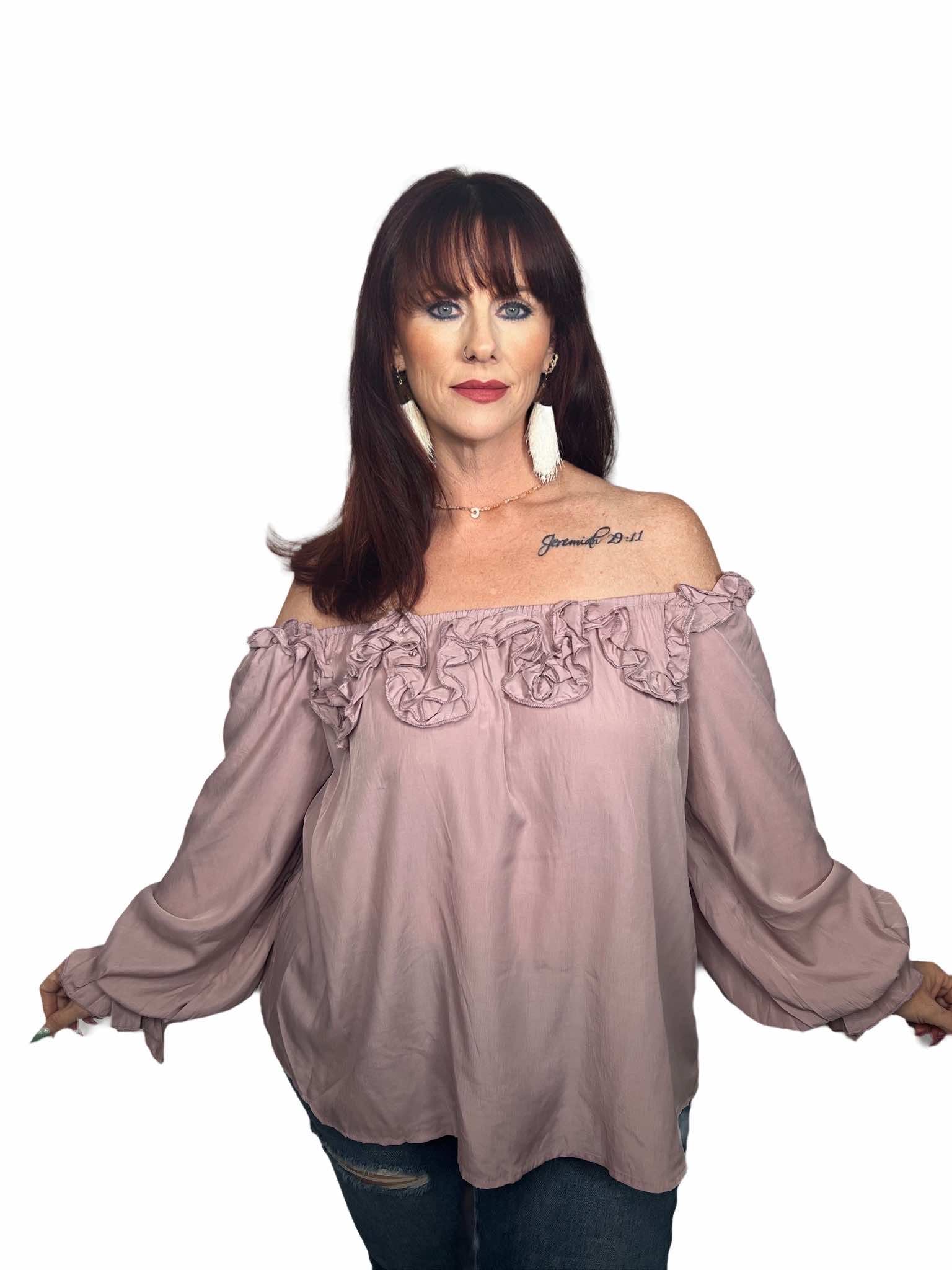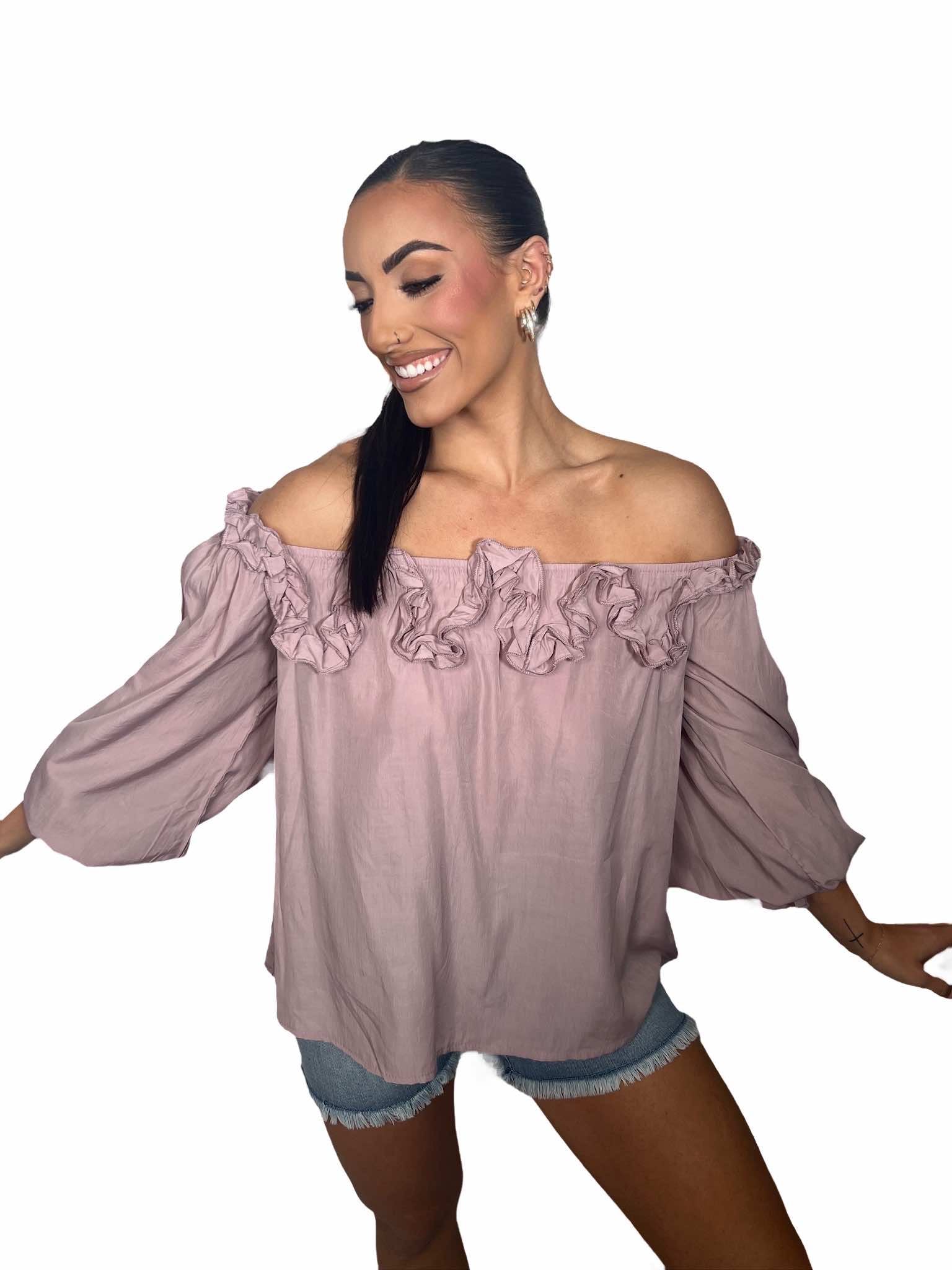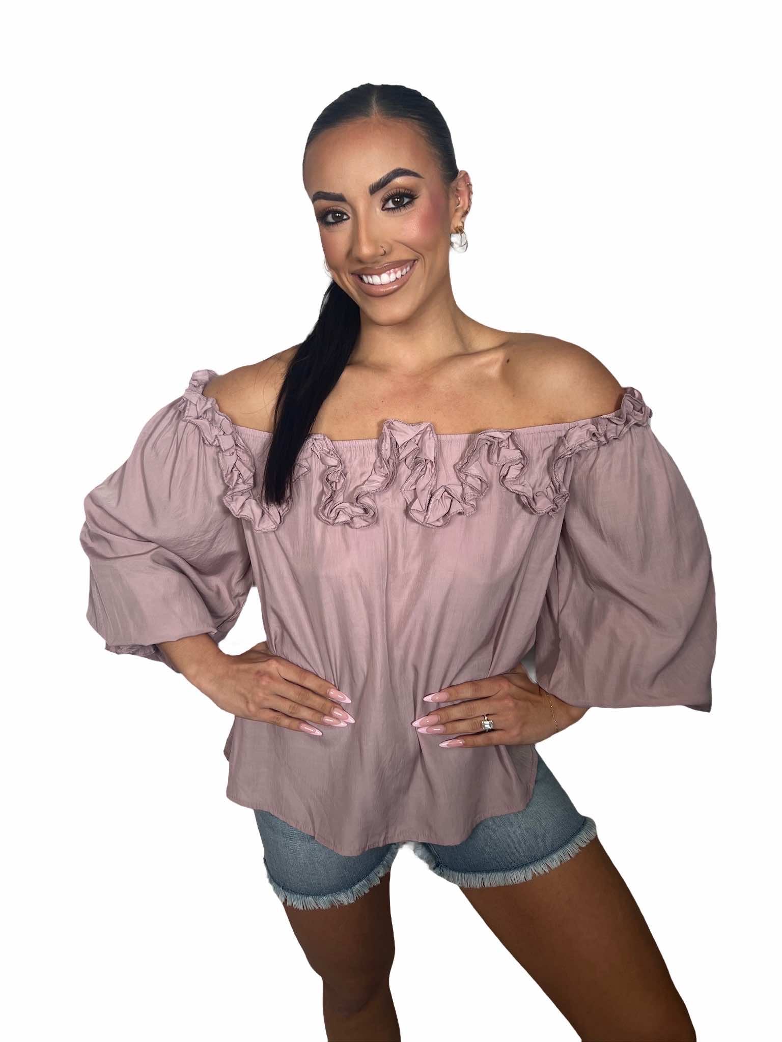 SEXY SOLID COLOR RUFFLED SHOULDER TOP